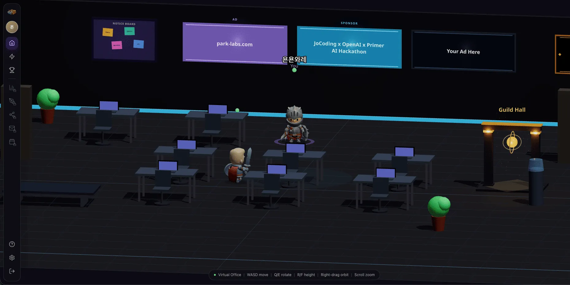 Create your account and enter your virtual marketing office — a beautiful isometric 3D workspace.
